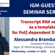 Il 1° ottobre 2025 alle 11.00 si terrà il seminario “Transcript RNA serves as a template for Polζ-dependent DSB repair” presso l’Aula Falaschi dell’Istituto di Genetica Molecolare “Luigi Luca Cavalli-Sforza” del CNR a Pavia.